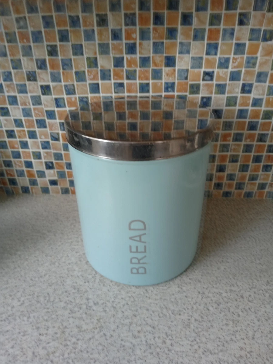 Light Blue Bread Bin Metal Chrome Lids Matching Tea Coffee Sugar 26 5 X 22 5 Ebay
